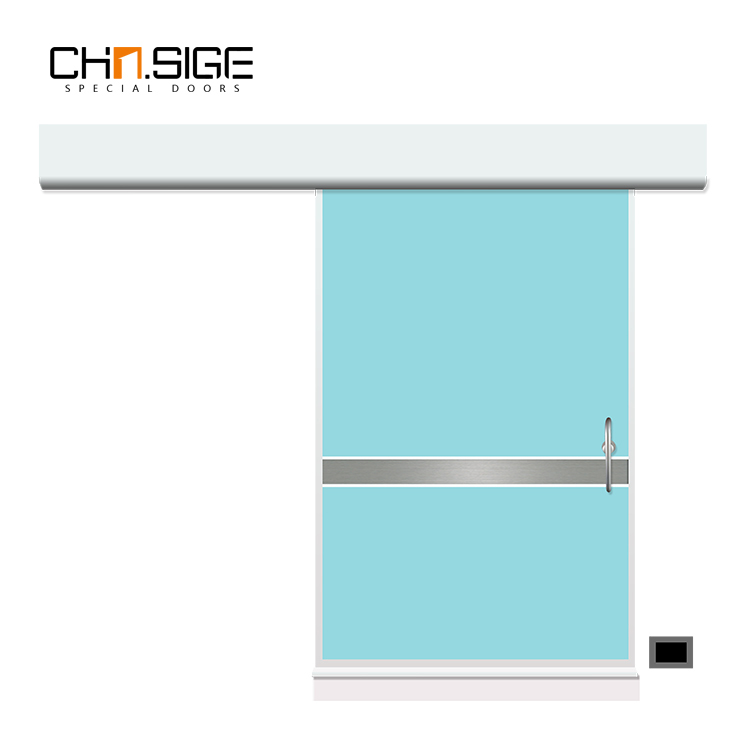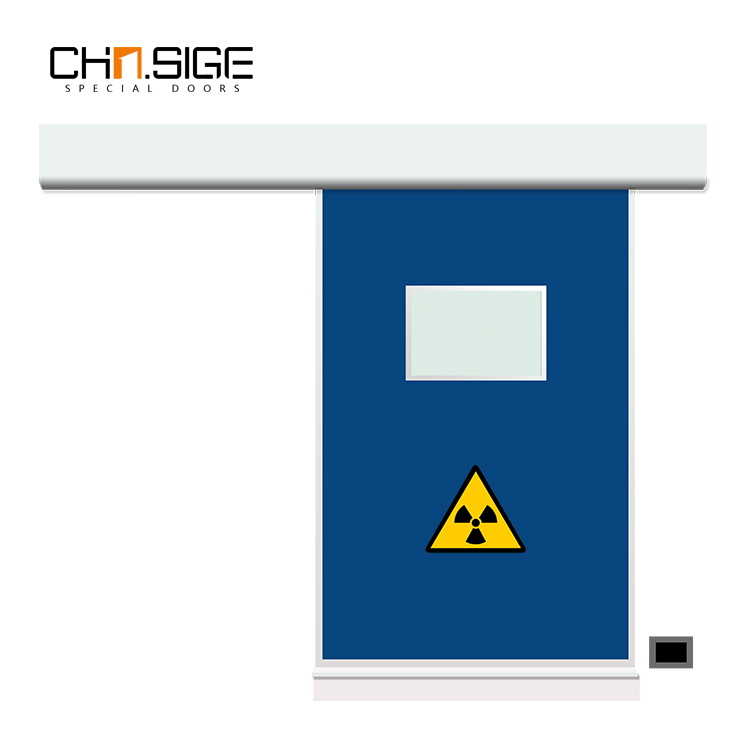 CT室,放射室一般選用3當(dāng)量以上的防輻射門,外皮用不銹耐酸鋼,內(nèi)部添加3mm厚度鉛板,確保周邊環(huán)境的安全性。因材質(zhì)特殊放門體重量大,因此會(huì)搭載電動(dòng)感應(yīng)裝置,方便人員進(jìn)出。